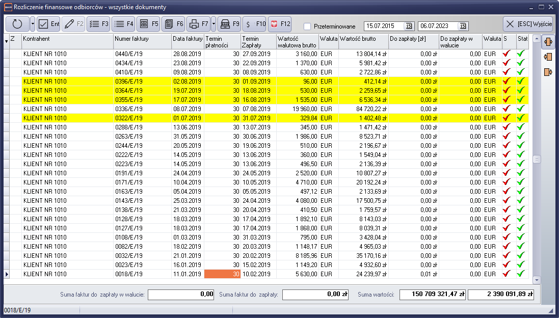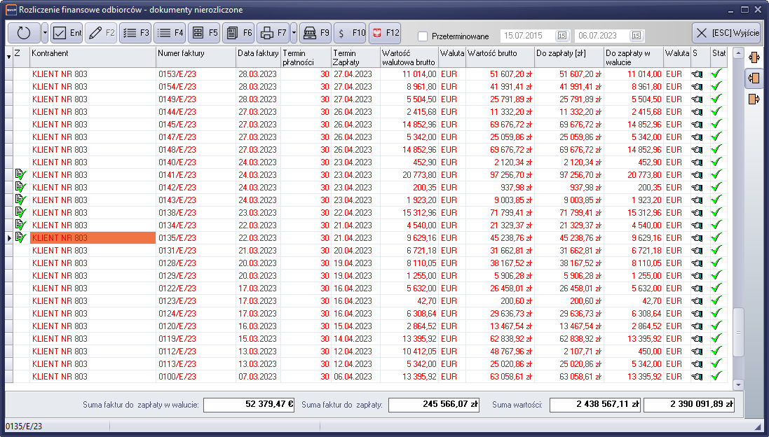 Rysunek 847 Rozliczenie finansowe dokumentów - wszystkie dokumenty