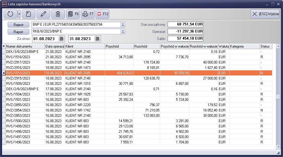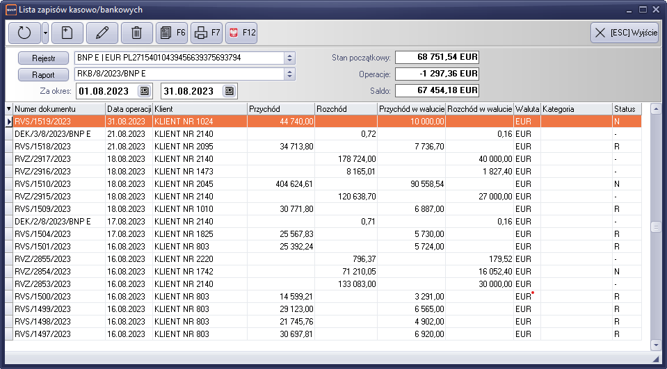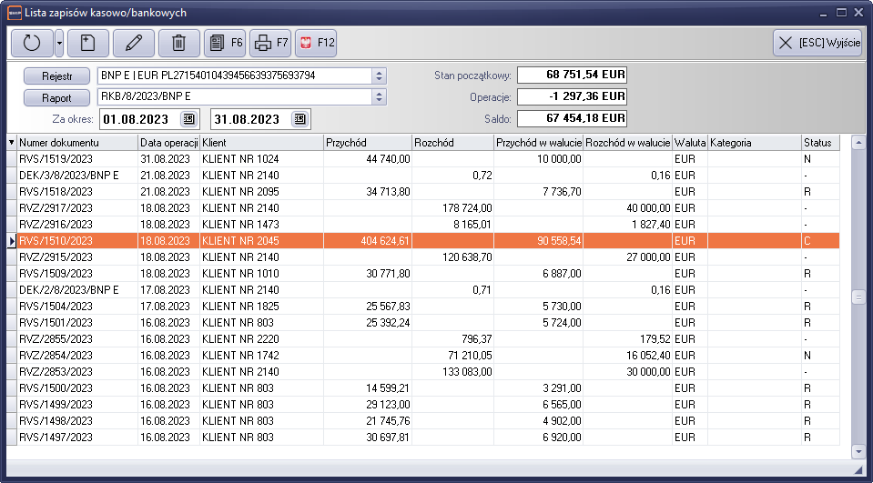 Rysunek 1 Okno pozycji rejestru kasowo/bankowego.