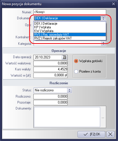 Dodawanie nowego zapisu do rejestru kasowo/bankowego