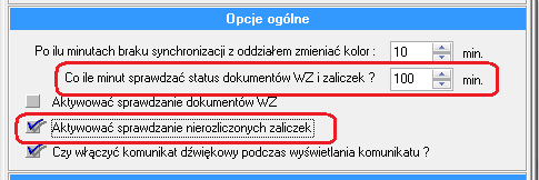 3. Opcja wyświetlania automatycznego komunikatu o nierozliczonych zaliczkach. Opcje systemu -> 1.1.Ogólne->Opcje ogólne.