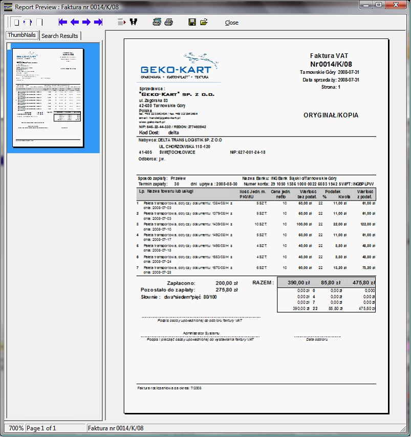 Rysunek 988 Podgląd faktu rozliczeniowych