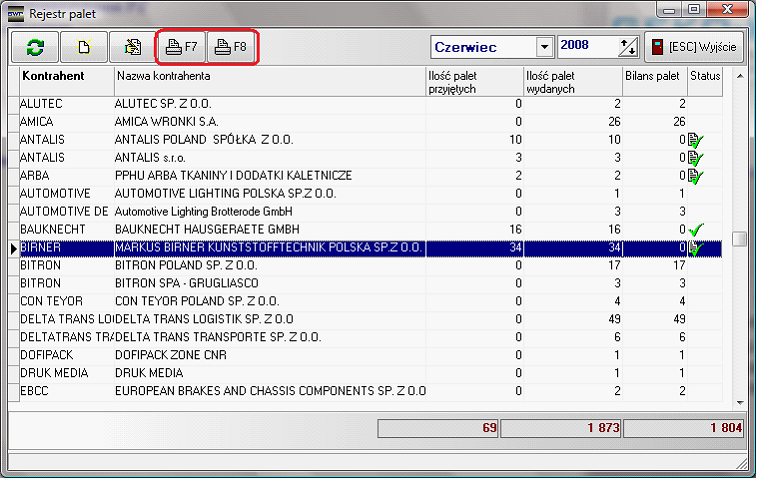 Obydwa rejestry dostępne są z poziomu głównego okna rejestru palet.