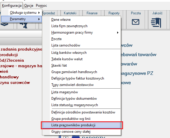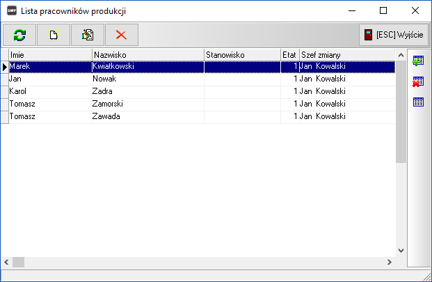 Rysunek 955 Lista pracowników produkcji dostępna z poziomu menu głównego
