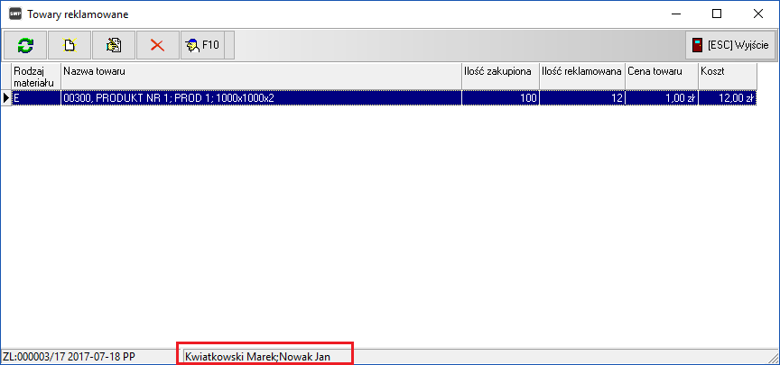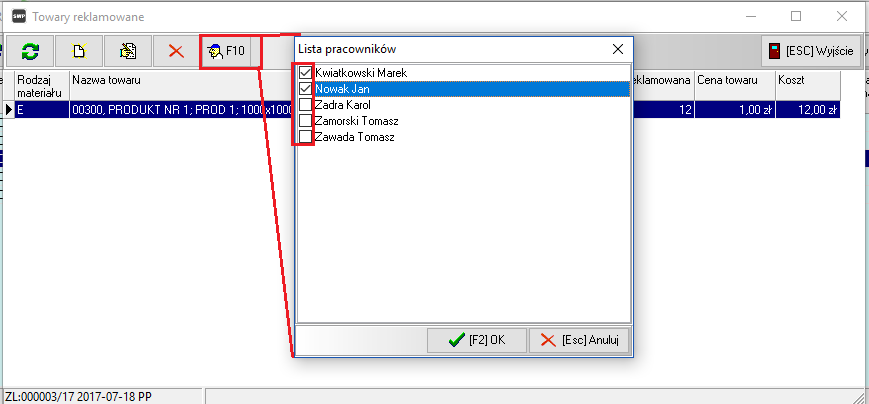 Dodawanie pracowników odpowiedzialnych za produkcję, zostało udostępnione w oknie pozycji towarowych reklamacji.