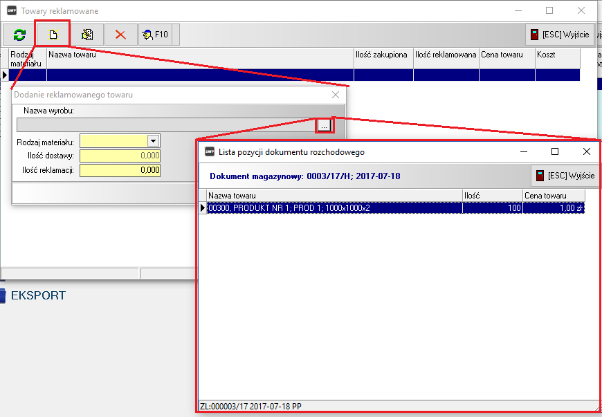 Dodawanie dokumentu przeprowadzamy z poziomu okna nagłówków reklamacji.