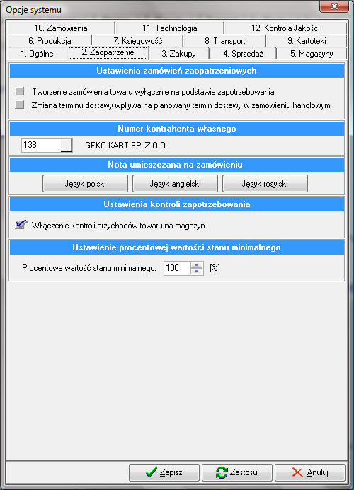 1. Ustawienia zamówień zaopatrzeniowych