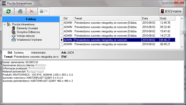 - "Lista operatorów, którzy otrzymają powiadomienie:". Lista operatorów którzy otrzymają informację o wprowadzeniu nienormatywnego surowca. Poniżej przykładowy komunikat wysłany do uprawnionego operatora.