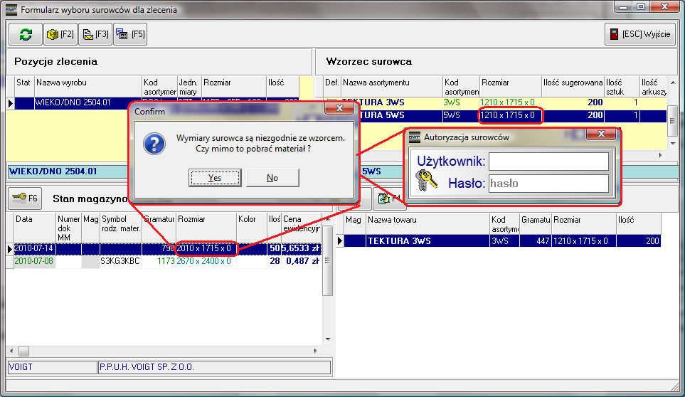 - "Czy włączyć automatyczne powiadamianie o wprowadzeniu nienormatywnego surowca ?". Opcja włączająca automatyczne powiadamianie wybranych operatorów o użyciu surowca o rozmiarze niezgodnym ze wzorcem produktu.