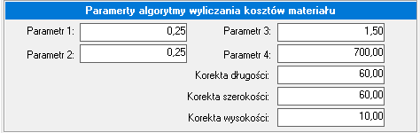 W opcjach programu należy uzupełnić parametry naliczania kosztów materiału dla formy.