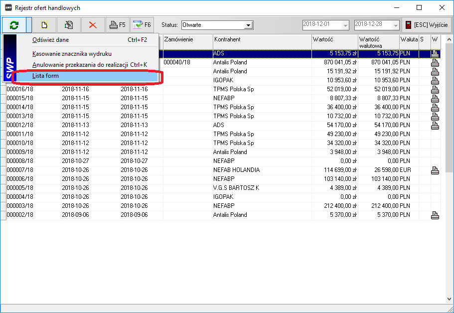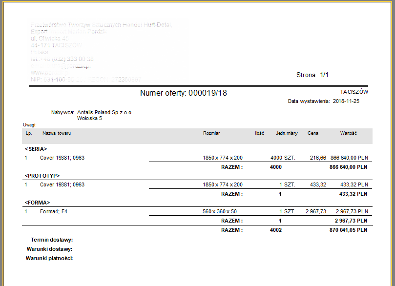 Rysunek 82 Wydruk oferty z pozycją formy.