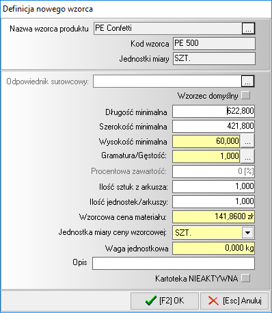 Rysunek 78 Formularz edycji wzorca surowcowego