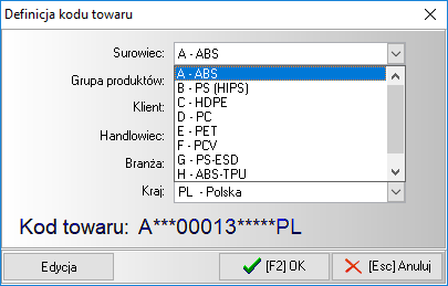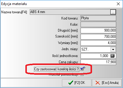 UWAGA. W oknie edycji należy dodatkowo wprowadzić znacznik ilości. Dzięki temu oznaczeniu system będzie korygował wartość materiału w zależności od założonej partii lub wielkości produkcji .