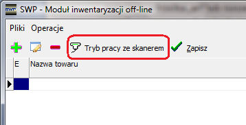 Po przełączeniu programu w tryb pracy ze skanerem w oknie głównym pojawi się panel z polem odczytu kodu kreskowego.