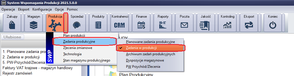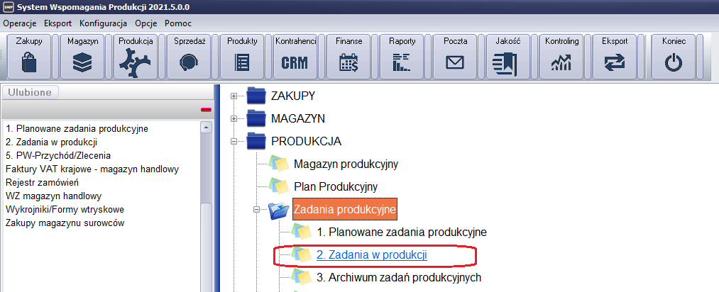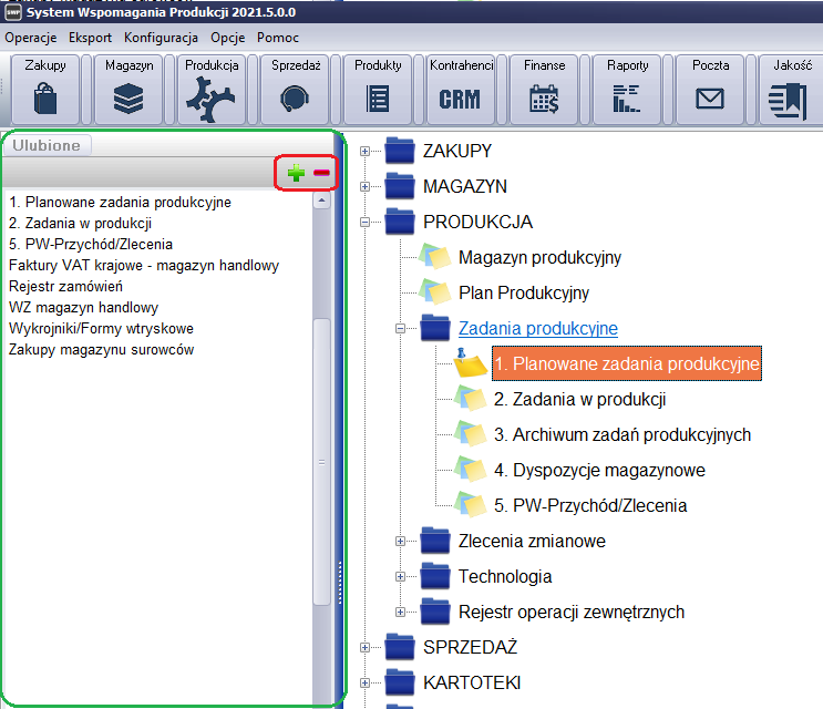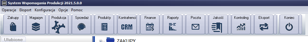 Główny ekran systemu zawiera sekcję funkcjonalności "ulubionych". W to miejsce można wprowadzić dowolną funkcję z menu głównego, tworząc swoistą listę najczęściej używanych funkcjonalności w systemie. Dzięki temu można w szybki sposób uruchomić funkcjonalność, bez szukania w menu. Dodawanie pozycji do menu polega na "przeciągnięciu" myszką, wskazaną funkcję w menu i opuszczenie w obrębie sekcji. Usunięcie pozycji z sekcji polega na "przeciągnięciu" muszą wskazaną pozycję z listy w miejsce nagłówka sekcji. Dodatkowo można użyć klawiszy "+" i "-" umieszczonych w nagłówku sekcji.