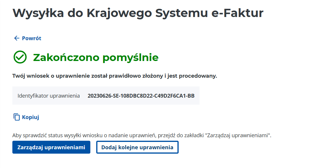 Rysunek 916 Zakończenie procesu rejestracji uprawnienia