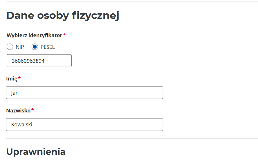 Rysunek 914 Formularz rejestracji uprawnionego