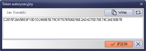 Po autoryzacji wprowadzamy skopiowany token i potwierdzamy klawiszem OK.