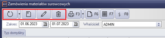 - Dodaj nową pozycję [Ctrl+N] – dodawanie nowej kartoteki, zamówienia itp.
