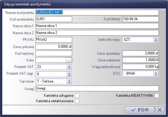 Rysunek 42 Formularz edycji kartoteki asortymentu