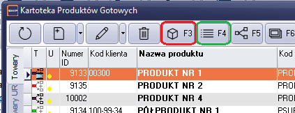 Rysunek 50 Klawisze wzorców produktu. F3 - Okno obsługi wzorców produktu. F4 - Struktura wzorców produktu.