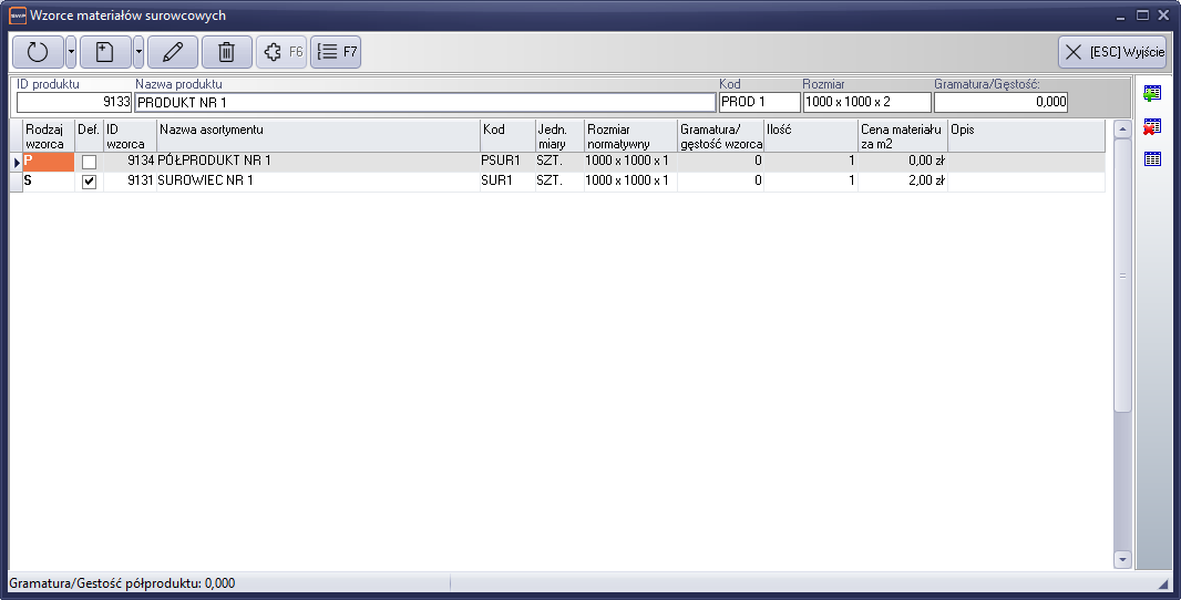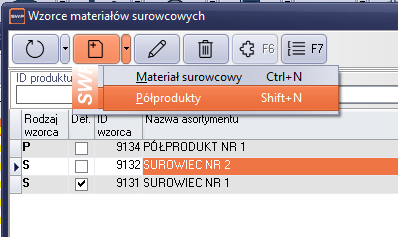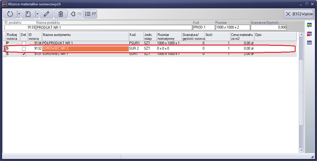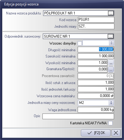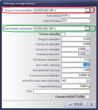 - Pierwszą czynnością będzie zdefiniowanie w liście wzorców odpowiednika wzorca surowcowego (opisane powyżej).