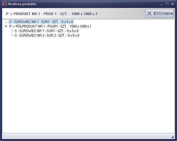 W Klawisz [F4], służy do przeglądania pełnej struktury wzorców produktów w postaci drzewka.