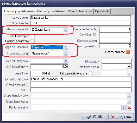 - Konfiguracja kartoteki kontrahenta