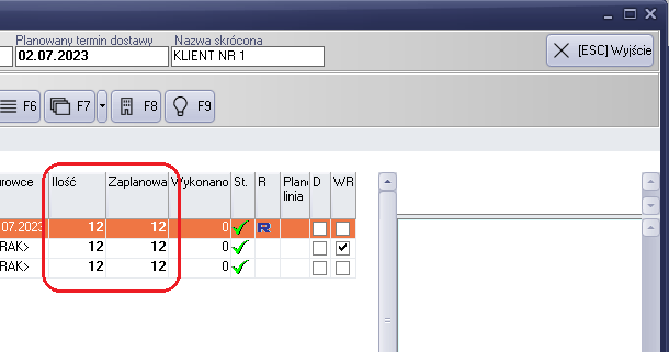 Rysunek 132 Informacja o pozycjach realizowanych
