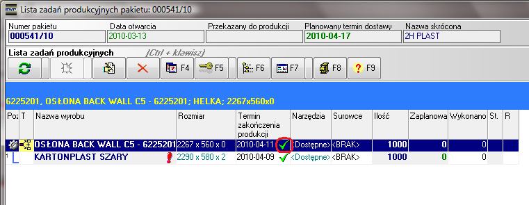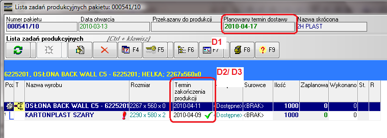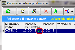 Rysunek 136 Pozycje pakietu zadań z terminem zakończenia produkcji