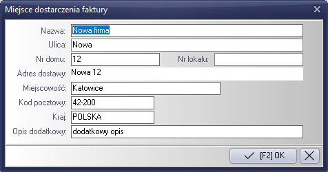 Rysunek 155 Formularz edycyjny miejsca dostarczenia faktury