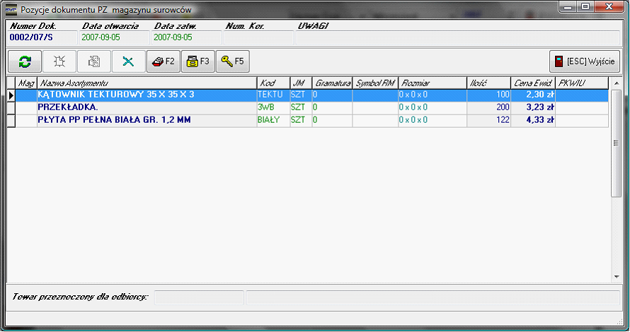 Po zatwierdzeniu nagłówka dokumentu przechodzimy do definicji pozycji dokumentu.