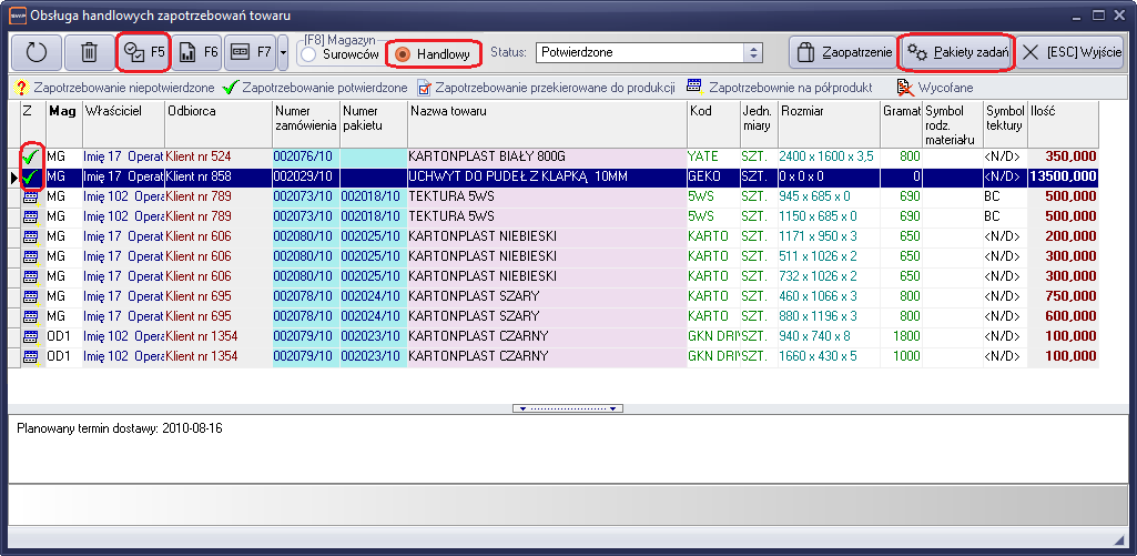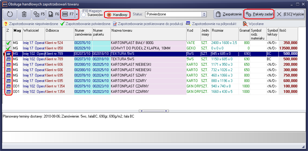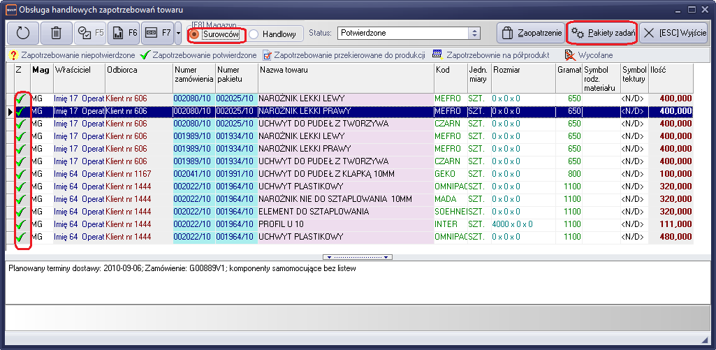 Lista zapotrzebowań towarów, służy do organizacji zapotrzebowań kierowanych z działu handlowego do dalszej obsługi. Zapotrzebowania dzielą się na trzy części.