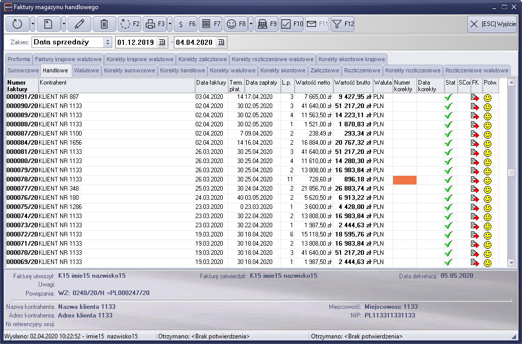 W panelu funkcji dodatkowych (prawa strona okna), możemy wybrać rodzaj przeglądanych faktur. W panelu tym, możemy również wydrukować fakturę i zatwierdzić fakturę. Tylko zatwierdzona faktura może zostać przekazana do systemu FK. Po przekazaniu do systemu FK faktury, nie istnieje możliwość edycji dokumentu.