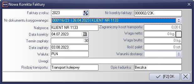 Rysunek 233 nagłówek dokumentu korekty faktury sprzedaży