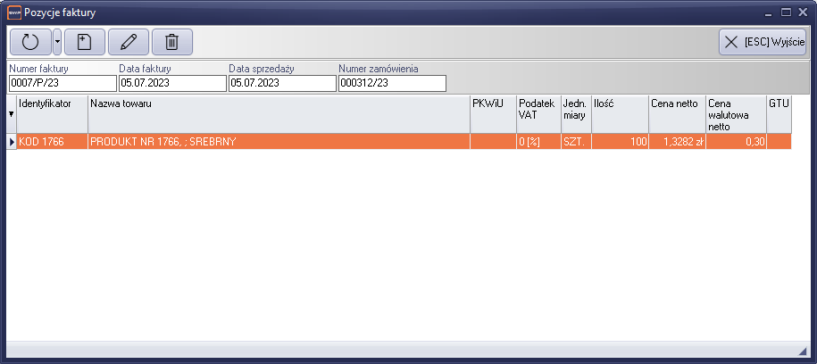 Rysunek 249 okno pozycji faktury proforma