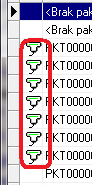 - Tryb z czytnikiem umożliwia dodawanie pozycji do dokumentu przy pomocy czytnika kodów paskowych. Podczas dodawania pozycji do dokumentu generowane jest automatycznie przez system wydruk etykiety towaru. Tryb ten wykorzystywany jest do obsługi pakietów PKT. Jeśli dokument pracuje w trybie z czytnikiem w kolumnie "...", widoczny jest odpowiedni symbol (praca w trybie z czytnikiem opisana została w rozdziale "Produkcja w toku").