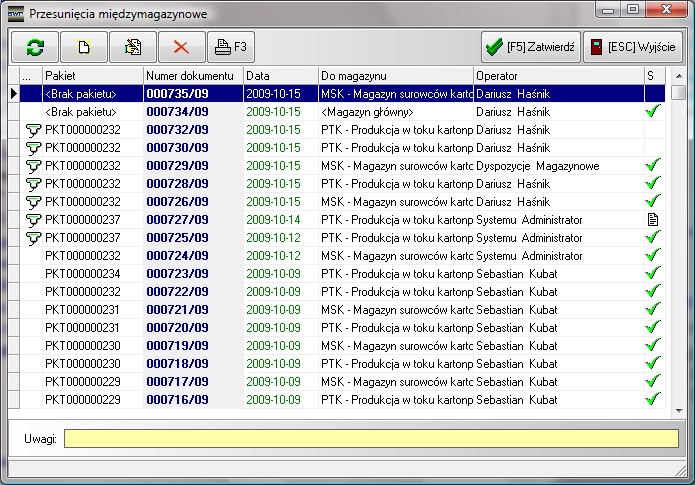 Rysunek 286 Okno nagłówków przesunięć między-magazynowych