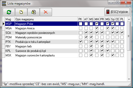 Zarządzanie magazynami realizujemy przy pomocy standardowych klawiszy w pasku narzędzi. Dodanie magazynu do listy wykonujemy przy pomocy formularza edycji.