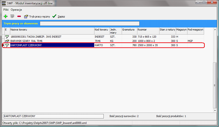 Rysunek 312 Główne okno modułu, z zaznaczoną pozycja wprowadzoną przy pomocy skanera