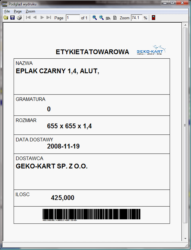 Rysunek 309 Przykładowa etykieta produktu gotowego