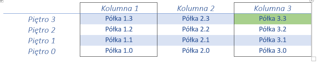 Regał A2 (regał nr 2 w strefie magazynu „A”), półka 3.3