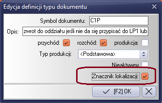 Znacznik obsługi LTM, ustawiamy o oknie formularze edycji typu dokumentu magazynowego.
