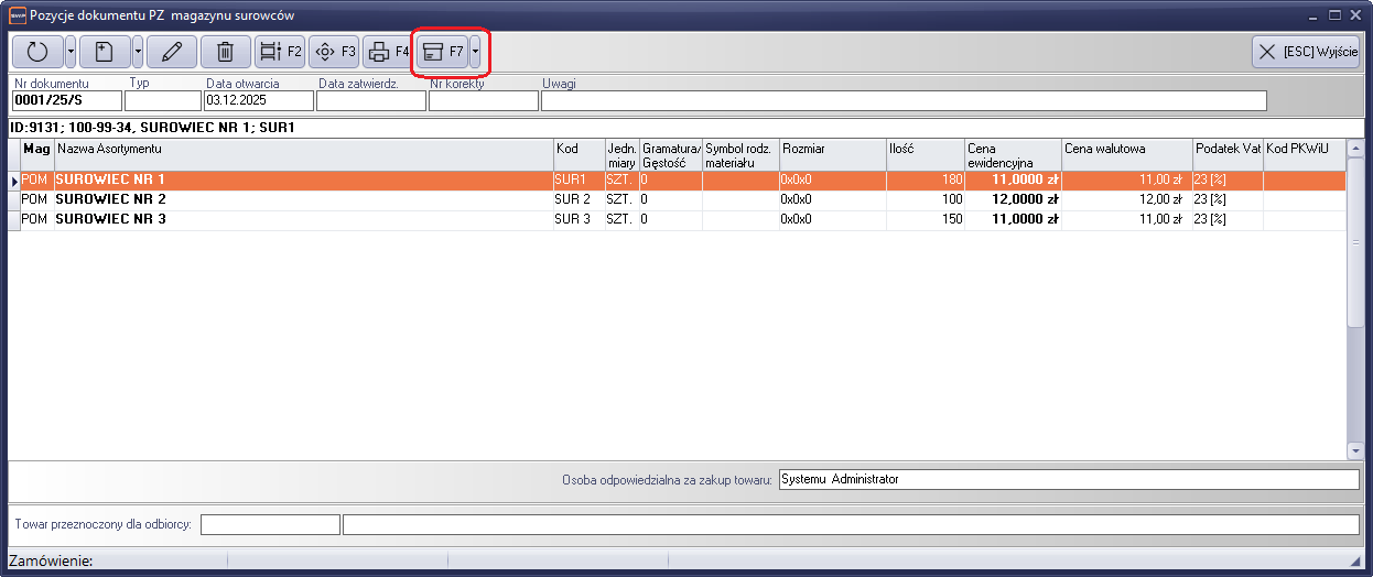 Rysunek 386 Opis pozycji dokumentu wraz z ilością w dokumencie .