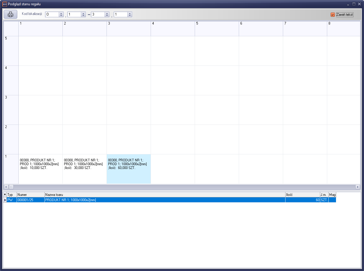 Rysunek 408 Podgląd regału z poziomu stanu magazynowego.