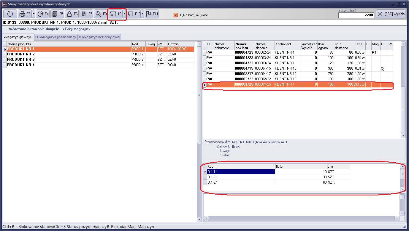 Mechanizm kodów lokalizacji towaru, dostępny jest z poziomu okna podglądu stanu magazynowego. W celu podglądu kodów lokalizacji danej pozycji stanu magazynowego używamy klawisza F12.