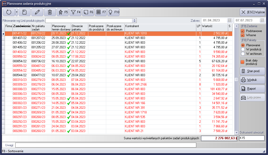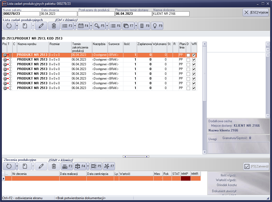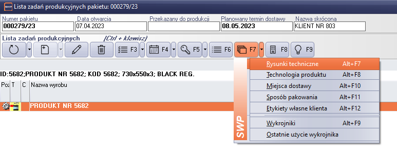 F5 – przekazanie zadań do produkcji (pakiety zadań w produkcji)