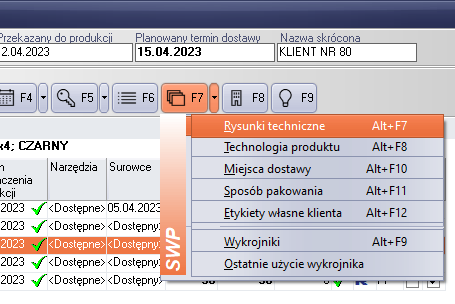Podczas tworzenia zamówienia otwartego, istnieje możliwość przypisania do pozycji zamówienia, rysunku technicznego.
