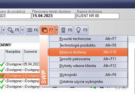 Od wersji 2007.7.4.0 do systemu został dodany mechanizm kontroli miejsca dostawy. Listę alternatywnych miejsc dostawy definiujemy w kartotece kontrahenta. Podczas dodawania pozycji towaru do zamówienia produkcyjnego system sprawdza, czy dla danego towaru było już definiowane miejsce dostawy w poprzednich zamówieniach. Jeśli takie miejsce było definiowane, zostaje ono przypisane do aktualnej pozycji zamówienia. Jeśli natomiast dany towar trafia na zamówienie dla danego klienta po raz pierwszy, to system sprawdza czy dla danego klienta została zdefiniowana lista miejsc dostawy i wybiera pozycję z zaznaczonym wskaźnikiem „miejsce domyślne”. Jeśli dla danego kontrahenta nie została zdefiniowana lista miejsc dostawy, system przypisze jako miejsce dostawy, po prostu adres kontrahenta.