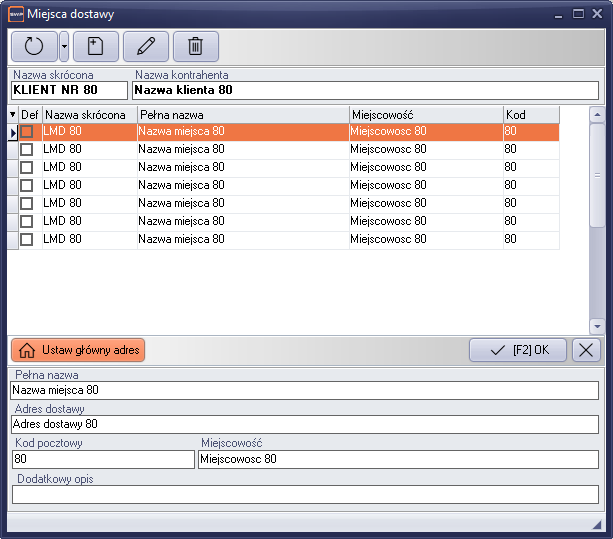 Po uruchomieniu funkcji na ekranie pojawi się lista zdefiniowanych miejsc dostawy dla danego klienta.