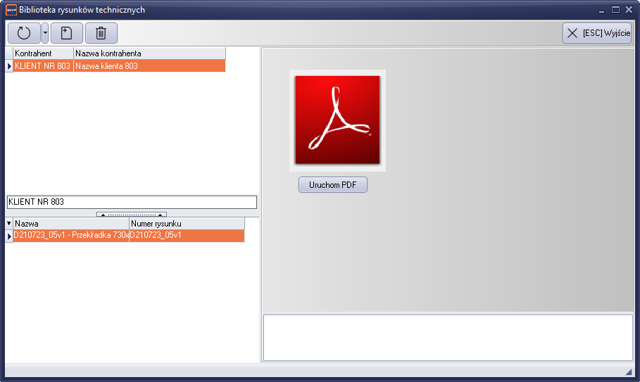 Powiązanie to, będzie przypisane do kartoteki towaru i zostaje zachowane w systemie po zakończeniu zamówienia. Rysunek techniczny dodajemy do listy z uprzednio utworzonej biblioteki rysunków.